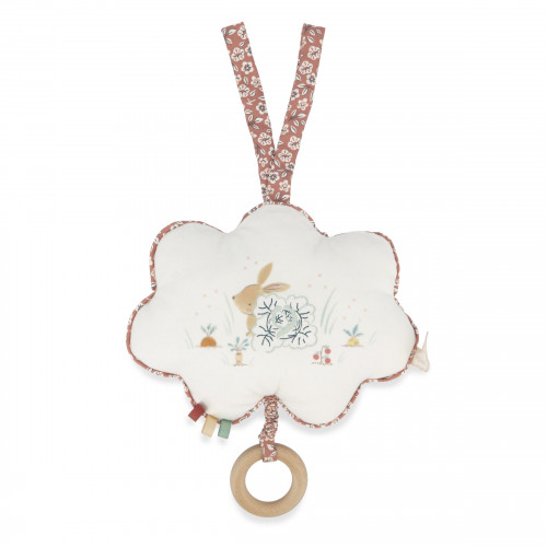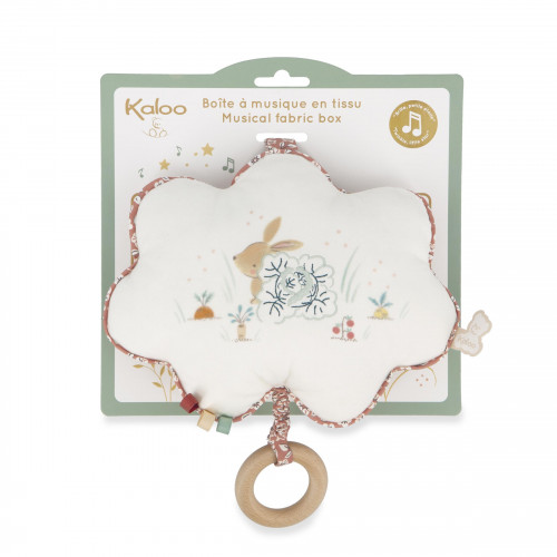 Kaloo, compagno dei primi istanti di vita, presenta una linea di cuscini musicali e burattini. Le filastrocche accompagnate da gesti stimolano il linguaggio, l'attenzione, la curiosità ma anche le abilità motorie dei più piccoli. Anima il burattino al suono della musica per condividere un momento speciale con il tuo bambino. Che la scoperta abbia inizio! Il carillon in tessuto delicatamente stampato e ricamato sul tema della ninnananna Coniglietto è ideale per lo sviluppo del neonato. Tirando il cerchio di legno all'estremità della corda sentirai la ninnananna Coniglietto, perfetta per cullare il neonato. Le sue piccole dimensioni di 15 cm e il suo nastro consentono di portarlo e appenderlo ovunque. Il carillon è impermeabile in modo da poter lavare facilmente il cuscino a mano senza rischi.